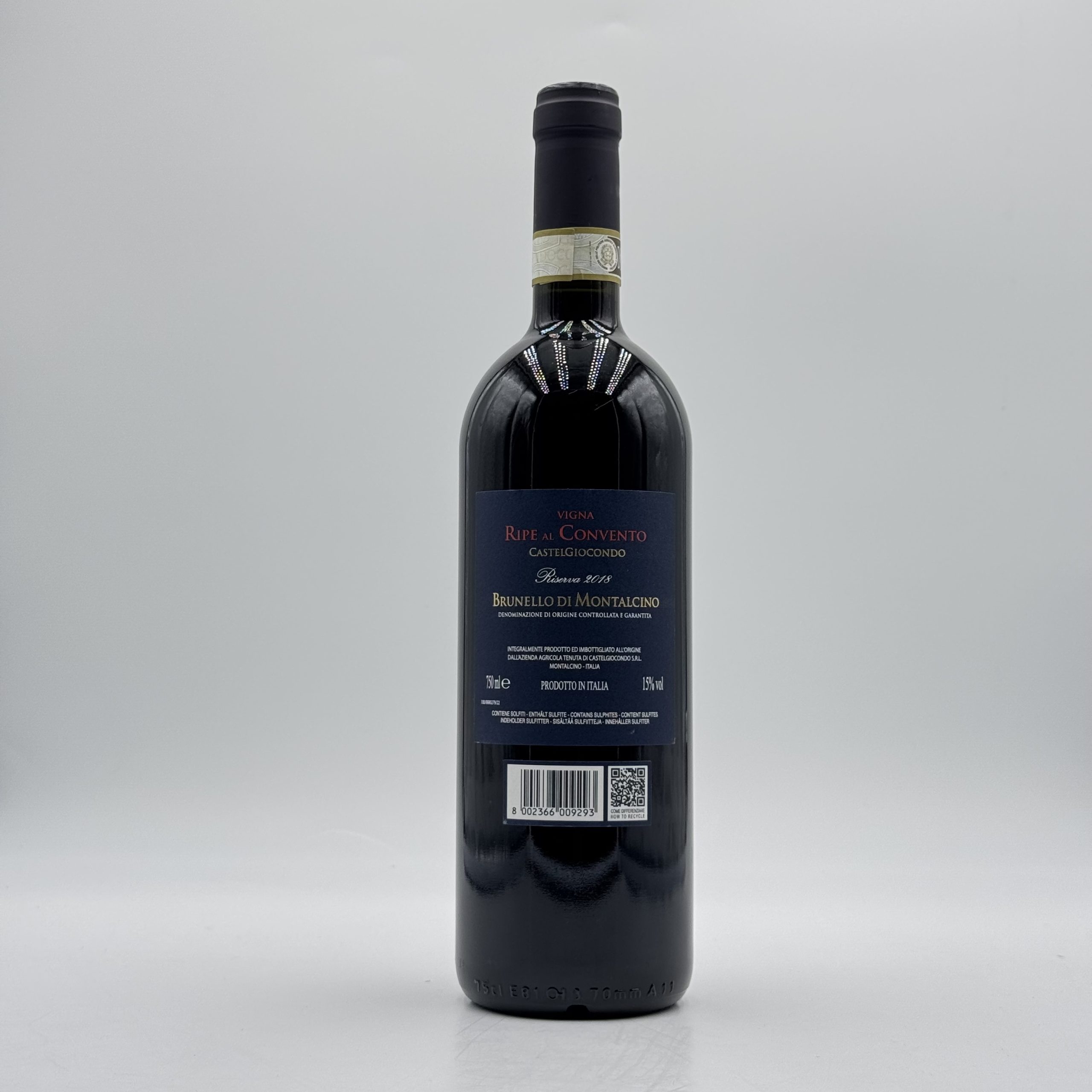 Brunello di Montalcino Riserva Ripe al Convento 2018 della storica tenuta CastelGiocondo rappresenta una delle massime espressioni del Sangiovese Grosso e del territorio di Montalcino. Prodotto solo nelle annate migliori, questo vino straordinario incarna l’anima autentica della Toscana, con un equilibrio perfetto tra potenza, armonia e longevità. Alla vista si presenta di un rubino intenso, mentre al naso sprigiona note profonde di ciliegia matura, prugna, spezie dolci, tabacco e un accenno di cioccolato fondente. Al palato è ampio e vellutato, con tannini setosi e una straordinaria struttura minerale che accompagna un finale lungo e persistente. Affinato per anni in botti di rovere e in bottiglia, il Brunello Ripe al Convento 2018 è un vino da collezione e da meditazione, ideale per accompagnare piatti di selvaggina, brasati o formaggi stagionati. Simbolo di eccellenza enologica, questa Riserva è destinata a evolversi magnificamente nel tempo, rappresentando il lusso e la raffinatezza del Brunello di Montalcino.