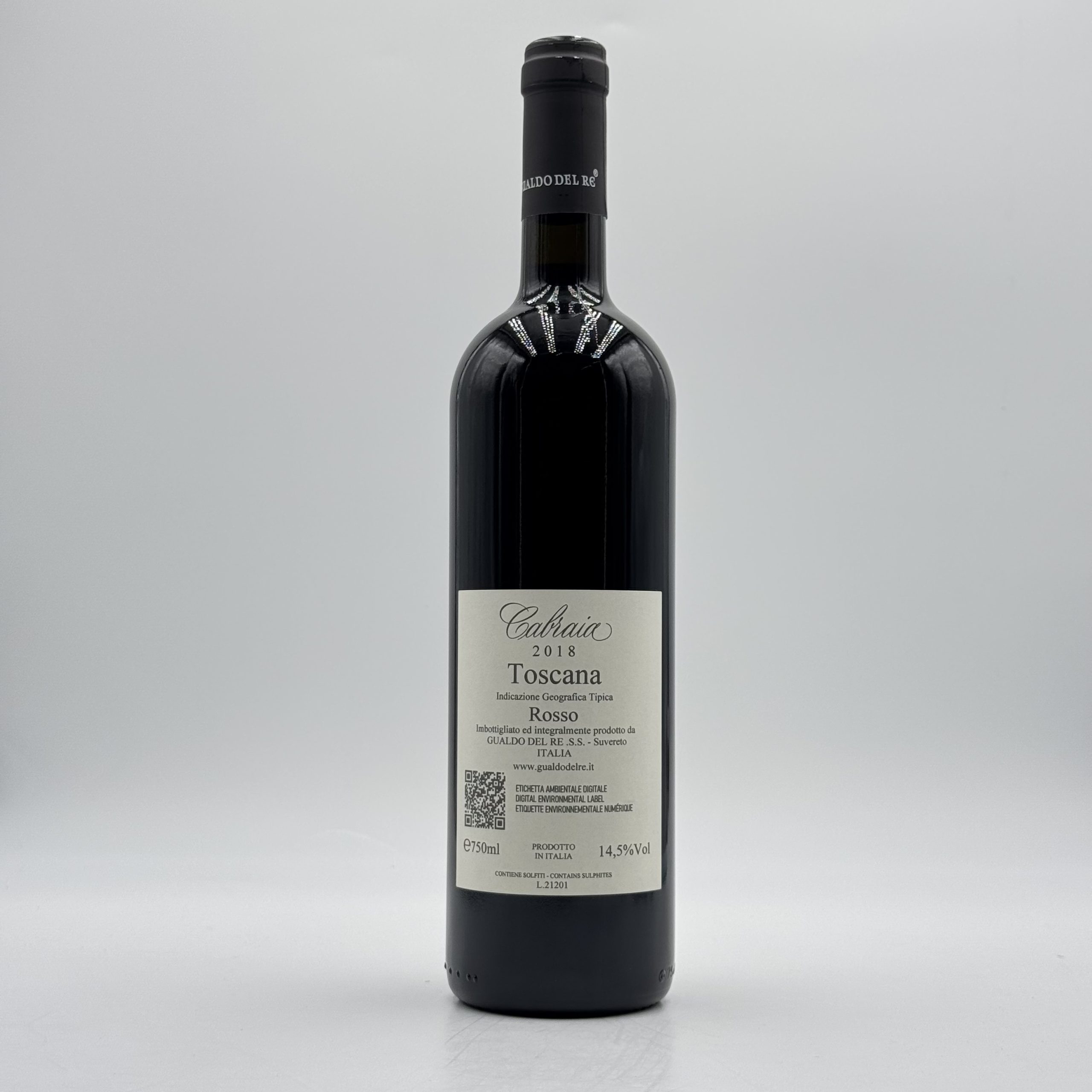 Il Gualdo al Re Cabraia 2018 è un vino rosso toscano di straordinaria personalità, capace di coniugare forza, eleganza e finezza aromatica. Prodotto nelle colline di Suvereto, nel cuore della Maremma, nasce da un equilibrato assemblaggio di Cabernet Sauvignon, Merlot e Sangiovese, varietà che si fondono in un’armonia perfetta. Il risultato è un vino di grande struttura, dal colore rosso rubino intenso con riflessi granati. Al naso si apre con profumi complessi di frutti di bosco maturi, ciliegia nera, spezie dolci e delicate note balsamiche. Al palato è pieno, avvolgente, sostenuto da tannini vellutati e da una freschezza equilibrata che regala un finale lungo e persistente. Affinato in barrique di rovere francese, il Cabraia 2018 esprime al meglio il carattere del terroir toscano e la raffinatezza della cantina Gualdo al Re. Perfetto in abbinamento con carni rosse, brasati, cacciagione e formaggi stagionati, è un vino da intenditori, ideale anche per la cantina da collezione.